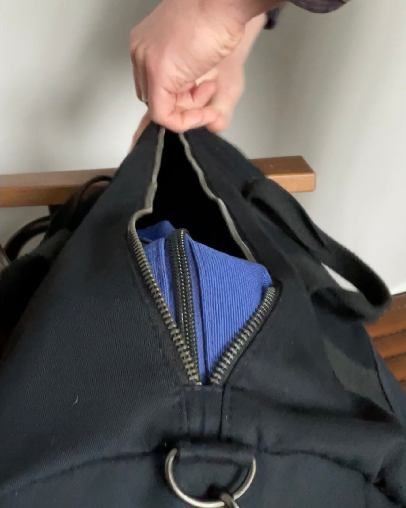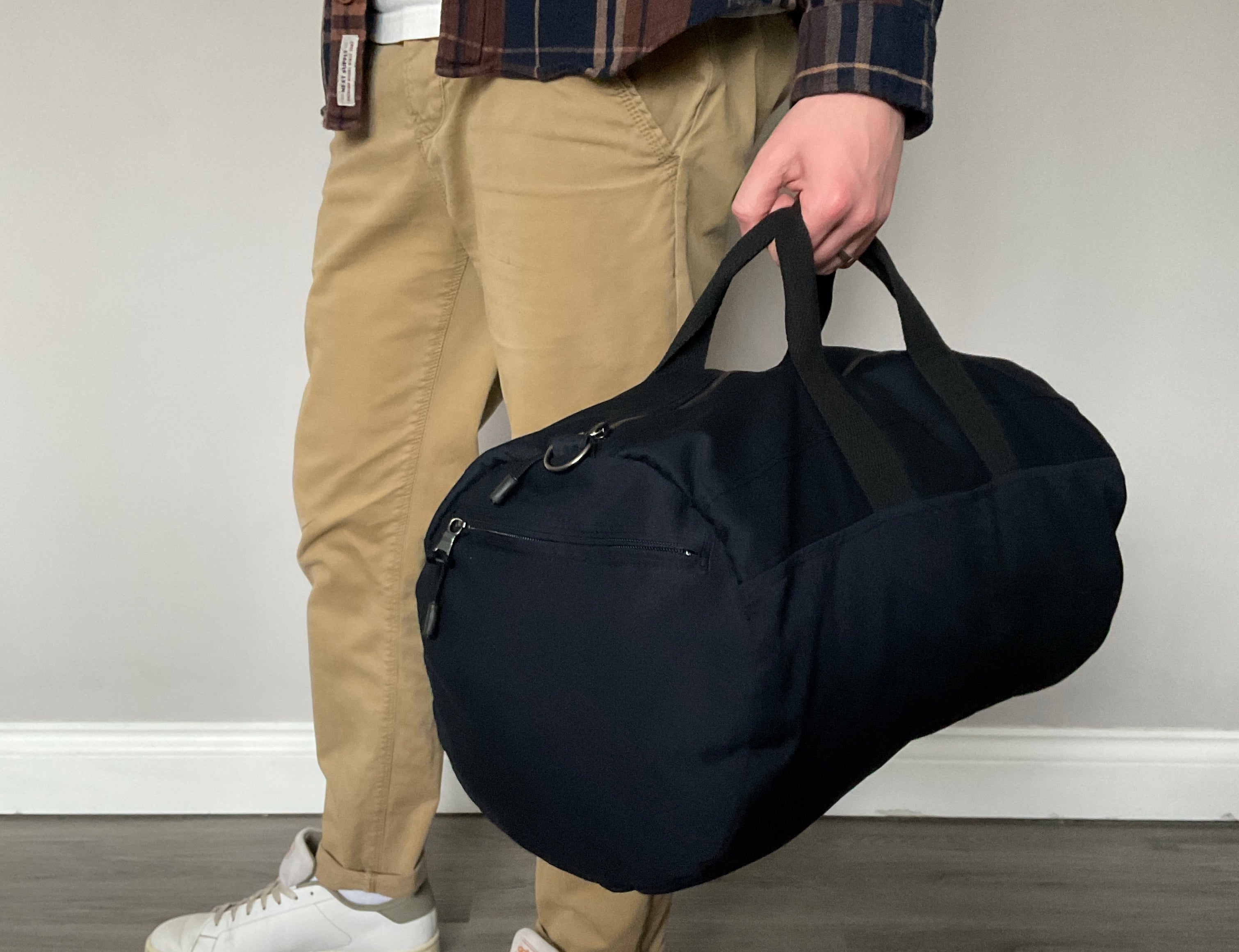 The first SEAM weekender — sewn from a preloved wool jacket — no longer exists.