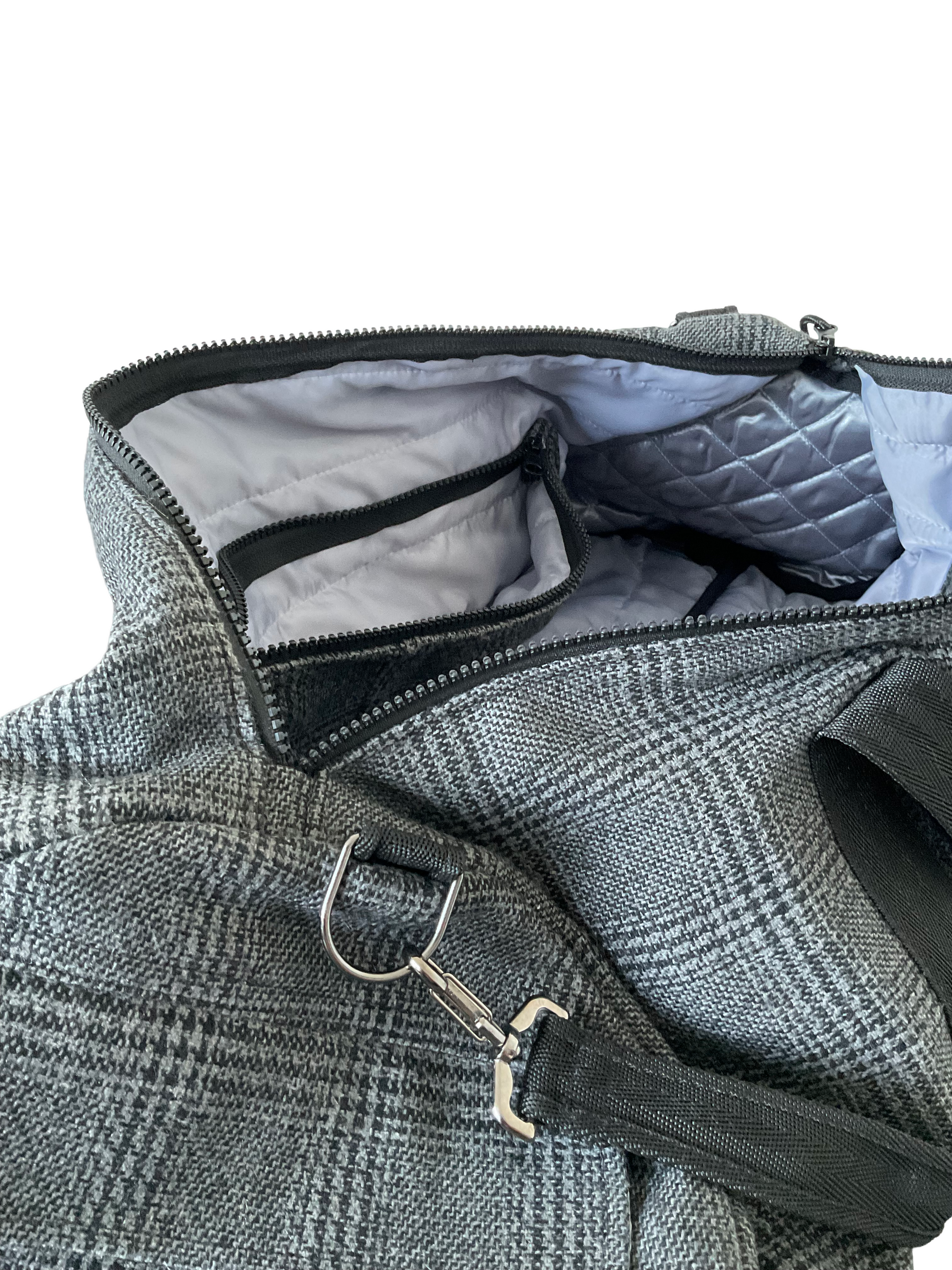 A journey almost a decade in the making. Originally found in 2015, a Cotton Traders sample coat was kept with the quiet intention of becoming something more. Now, reimagined and reworked, it finds its purpose as the Check Weekender—a one-of-a-kind travel companion.