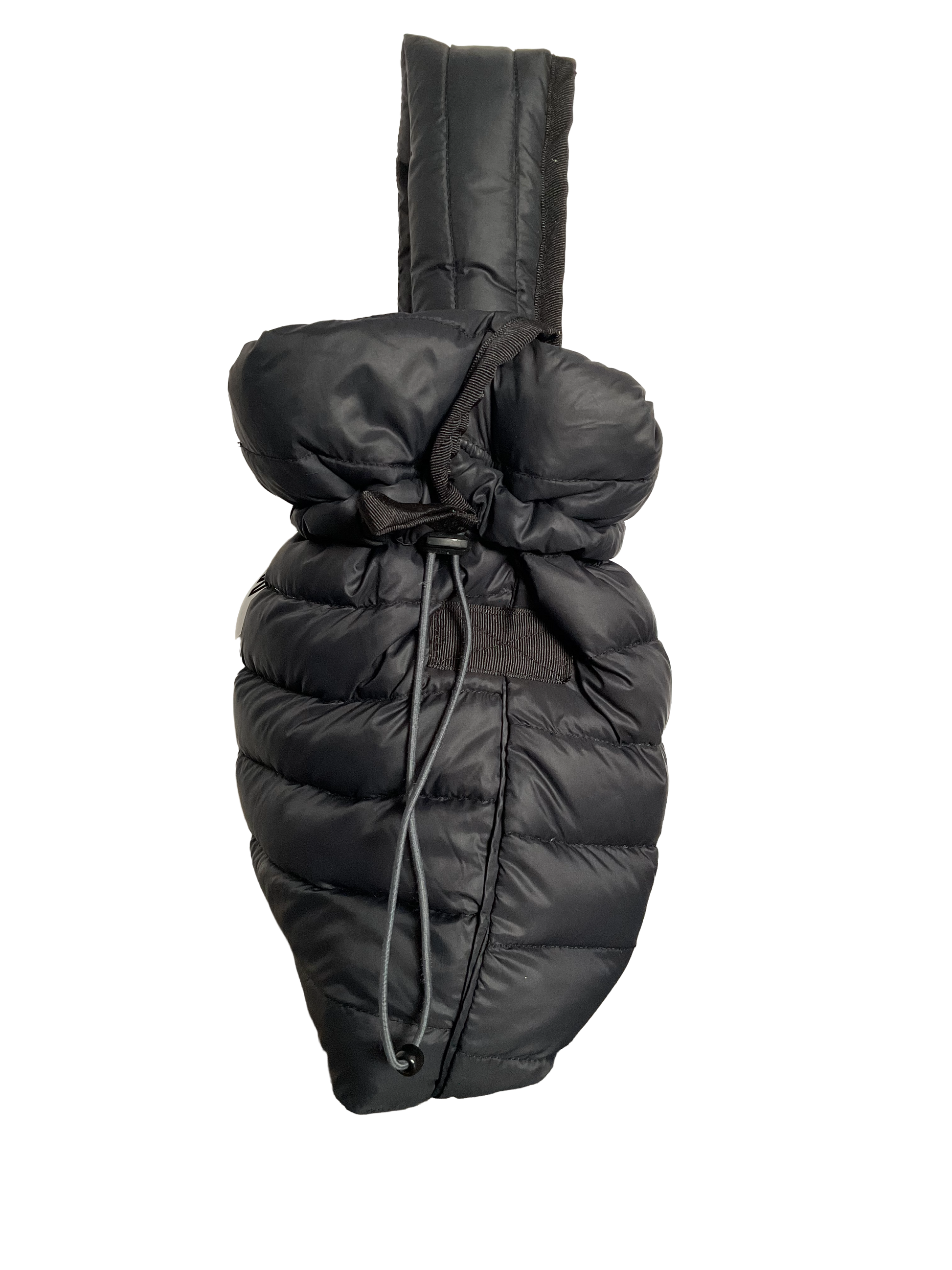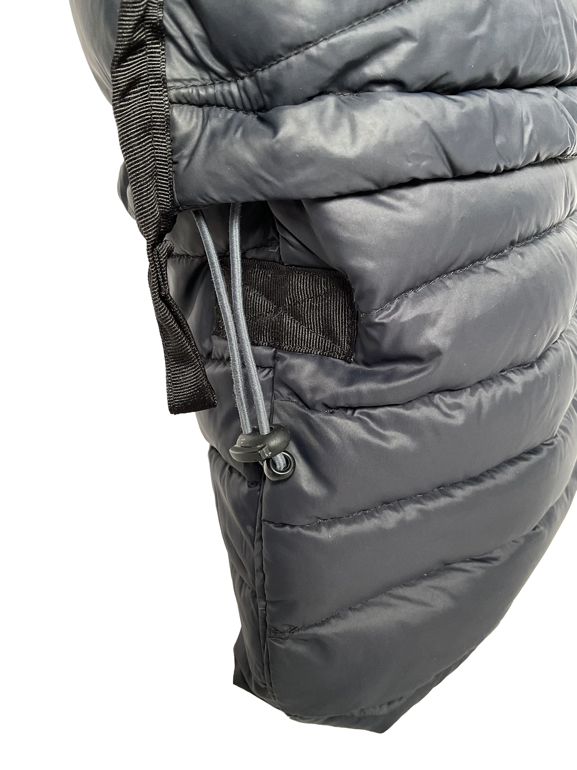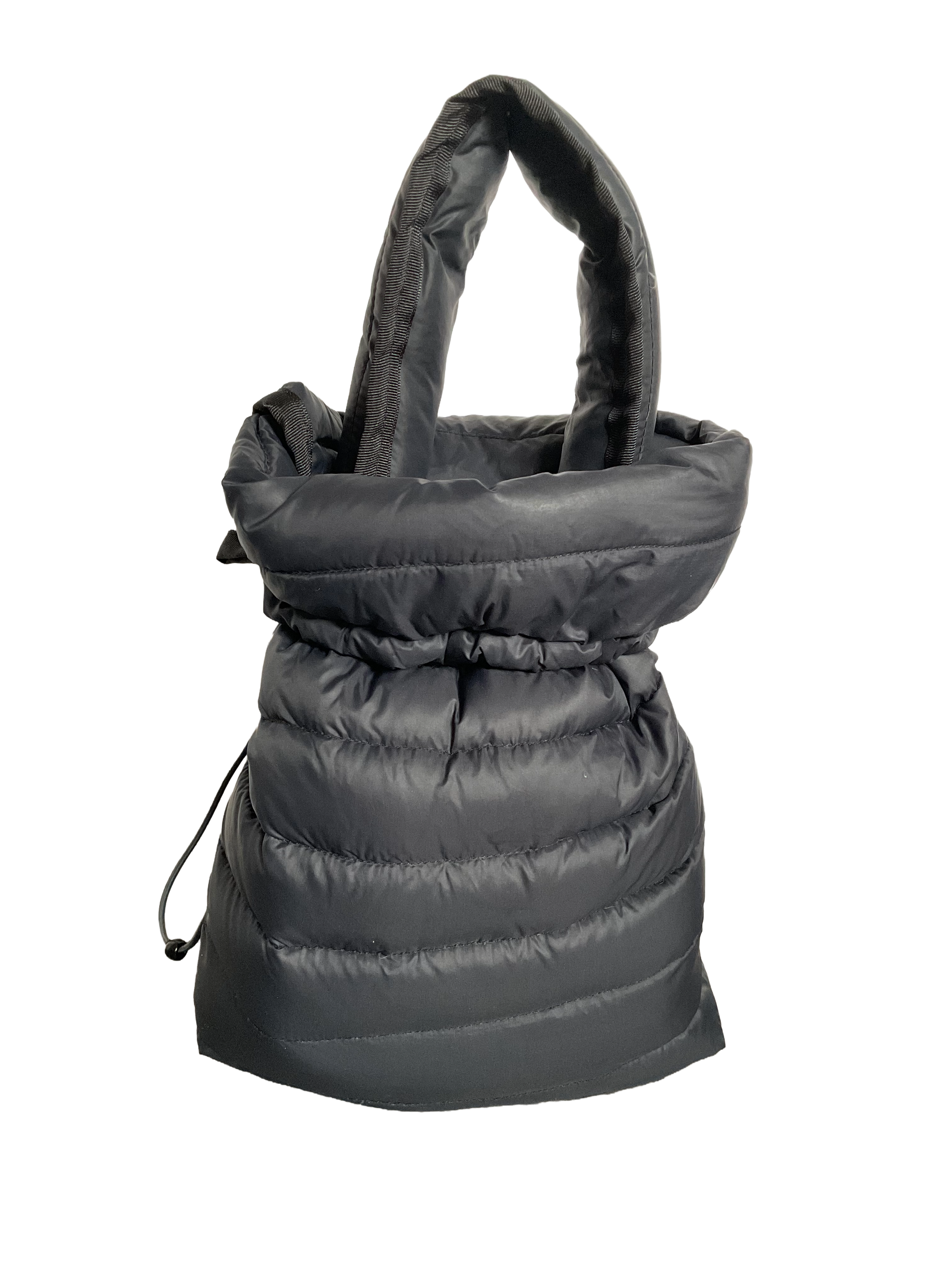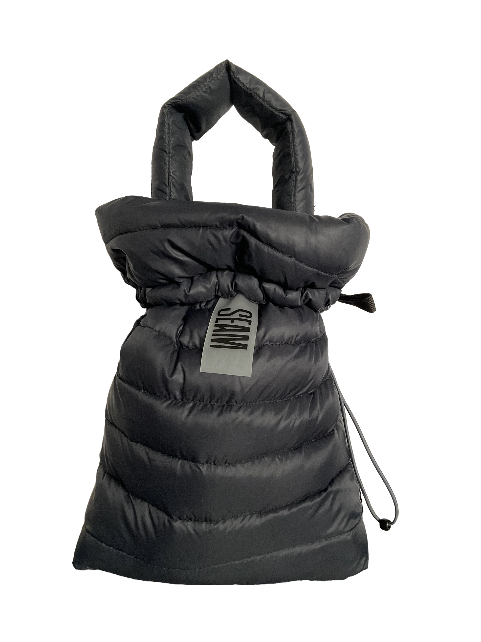 Originally a padded feather-and-down jacket, this lightweight grab bag is reworked entirely by hand from the jacket’s lower back and collar. Compact, soft, and quietly bold, it’s made for those “pick you up in 10” moments — easy to carry, easy to wear, and easy to make your own.